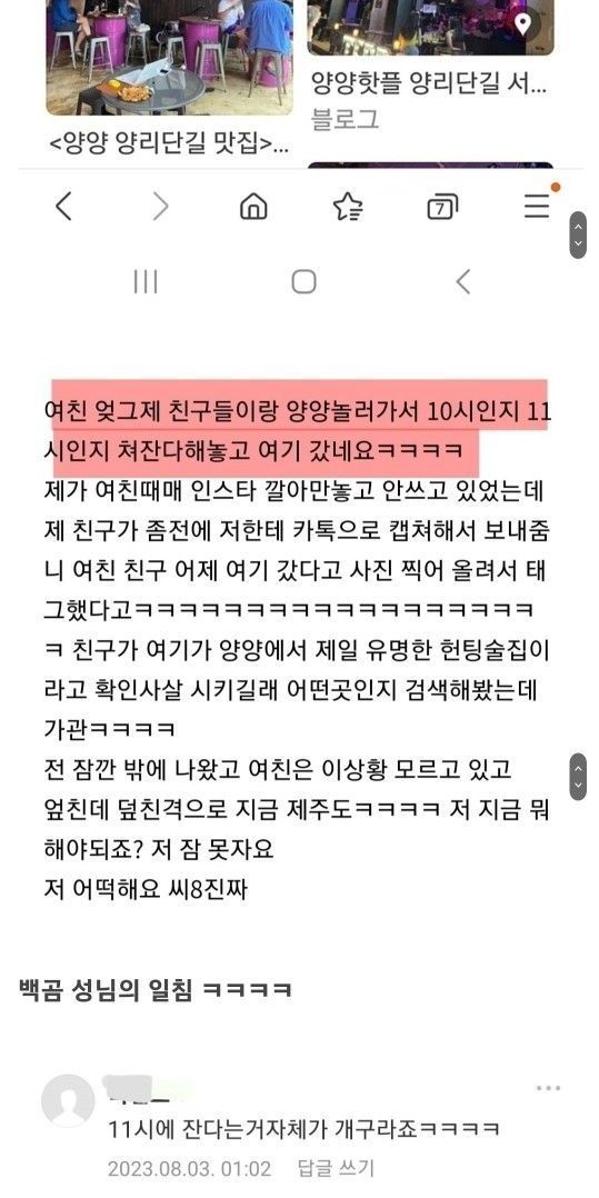 여친 양양 보낸 남자의 최후.
