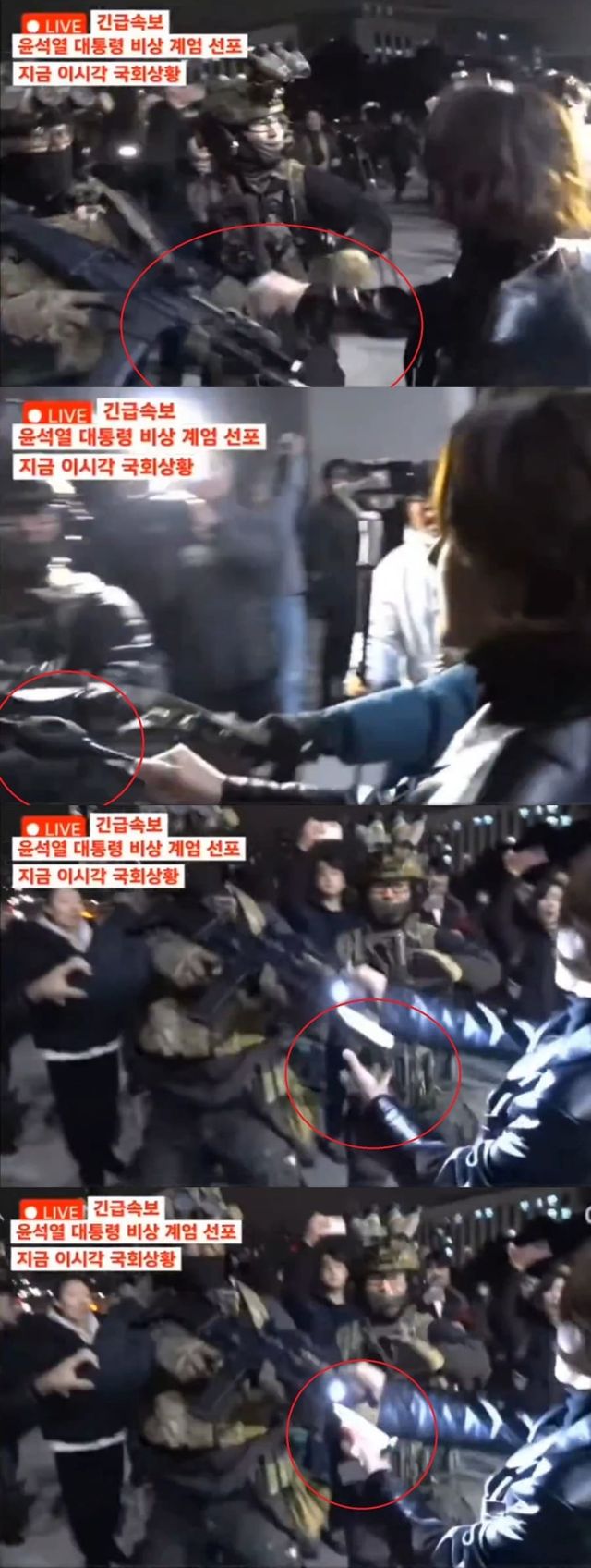 윤석열 대통령이 비상계엄령을 선포한 당시 국회 본청 건물에 투입된 무장 계엄군인과 안중근 의사 후손으로 알려진 안귀령 더불어민주당 대변인 사이에 물리적 충돌이 발생한 것을 두고 '총기 탈취' 의혹이 일자 이를 반박하는 주장이 나왔다.