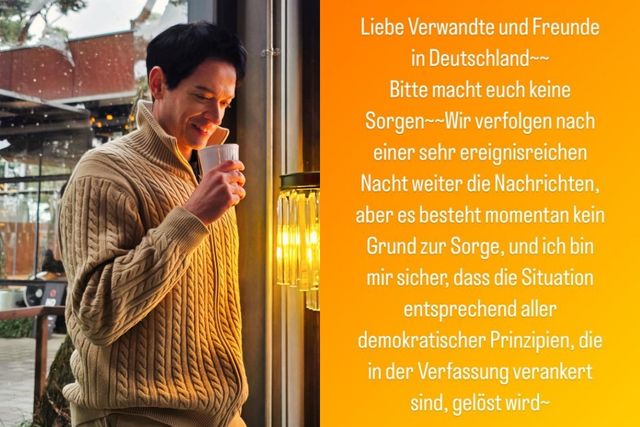 4일 다니엘 린데만은 자신의 인스타그램에 "걱정하지 마세요. 우리는 매우 다사다난한 밤 이후에도 계속해서 뉴스를 따라갈 것이지만, 현재로서는 걱정할 이유가 없으며, 헌법에 명시된 모든 민주적 원칙에 따라 상황이 해결될 것이라고 확신합니다"라고 독일어로 한국의 상황에 대해 전했다.