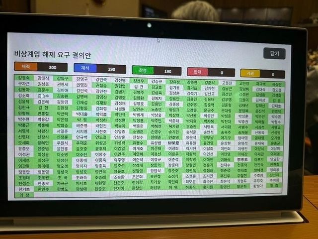 더욱이 국회는 방금 막 헌법과 법률이 정한 절차에 따라 계엄을 해제할 것을 요구했으며,