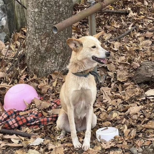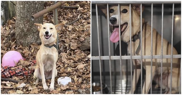 유기견은 며칠간 야산에 묶여 있다가 한 산불 감시원의 신고로 보호소에 옮겨진 것으로 알려졌다.