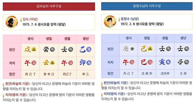 위키사주 김숙, 윤정수 궁합 화면 / 위키사주