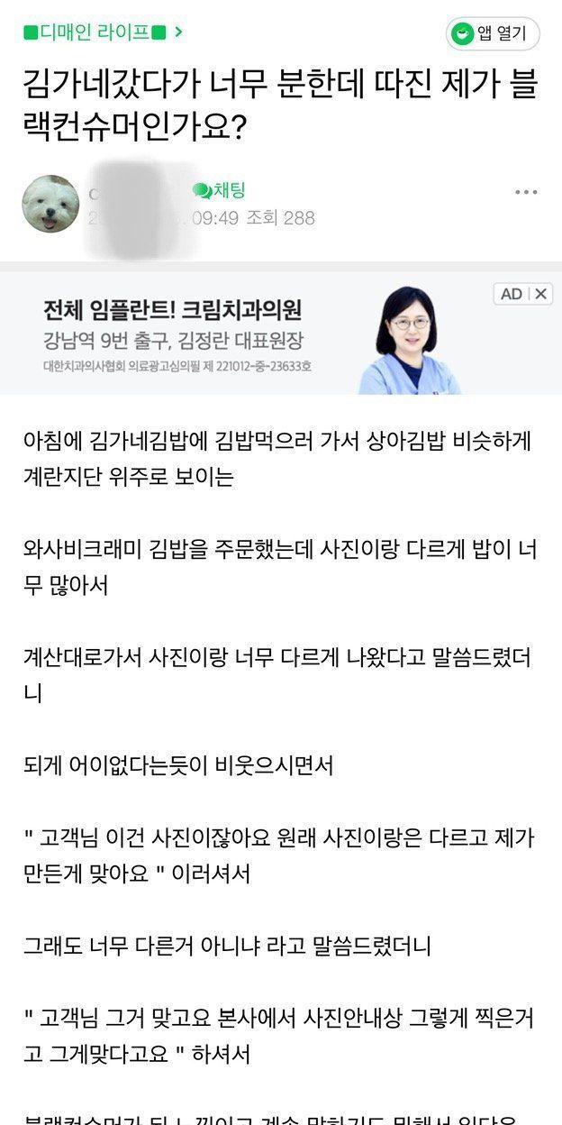 김밥집 갔다가 개빡친 디매인.