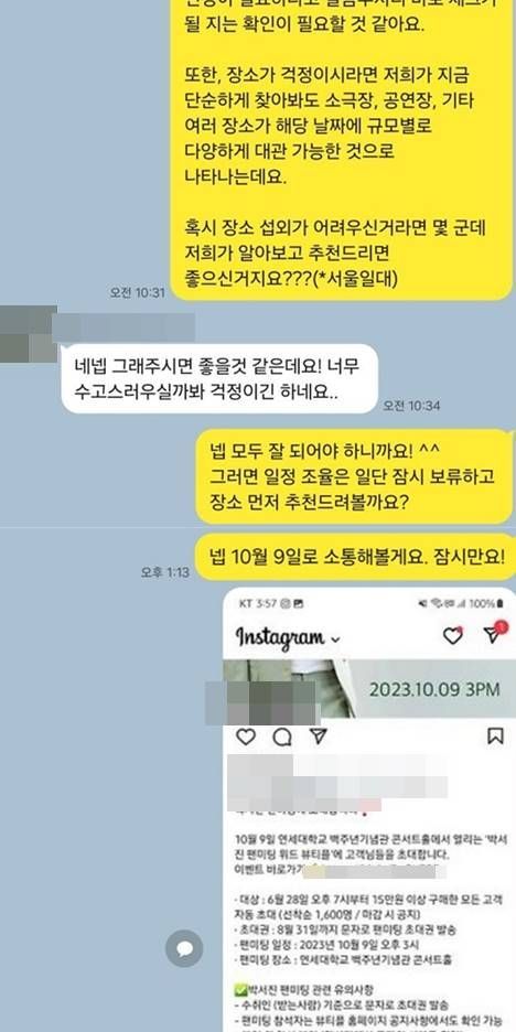 B사 관계자와 박서진 측 관계자가 주고받은 대화 내용을 보면 이같은 주장은 사실이 아님을 알 수 있다.