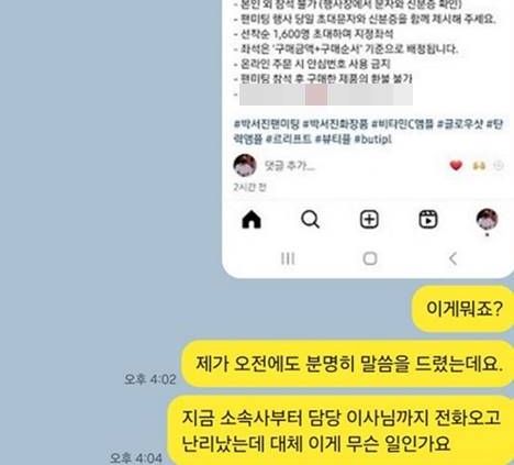 그러나 확인 결과, A씨의 주장과는 많은 부분이 달랐다. A씨 측의 광고 에이전시 B사 측은 A씨가 이러한 글을 올린 이유가 '팬팔이'를 막았기 때문이라고 했다.