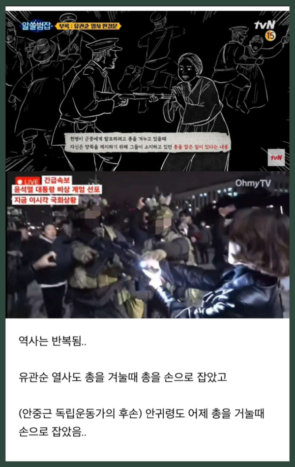 이 과정에서 안귀령 더불어민주당 대변인이 계엄군과 대치하다가 총구를 붙잡고 항의하는 장면이 포착되면서 논란이 가중되고 있다.
