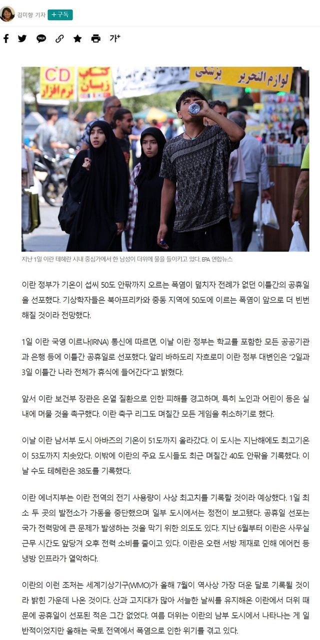 무려 51도…‘폭염 공휴일’ 선포한 이란 “이틀간 모두 쉬어라”