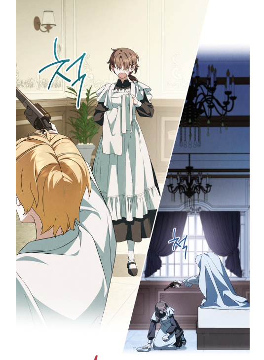 옷을 갈아입은 주인님은 폴라를 향해 총을 겨눕니다.
