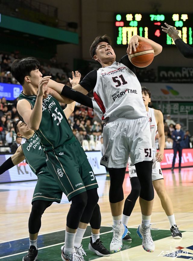클러치 3점포로 쐐기 박은 윤원상…선두 LG, 2차 연장 끝에 KCC 잡고 4연승