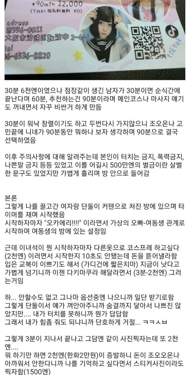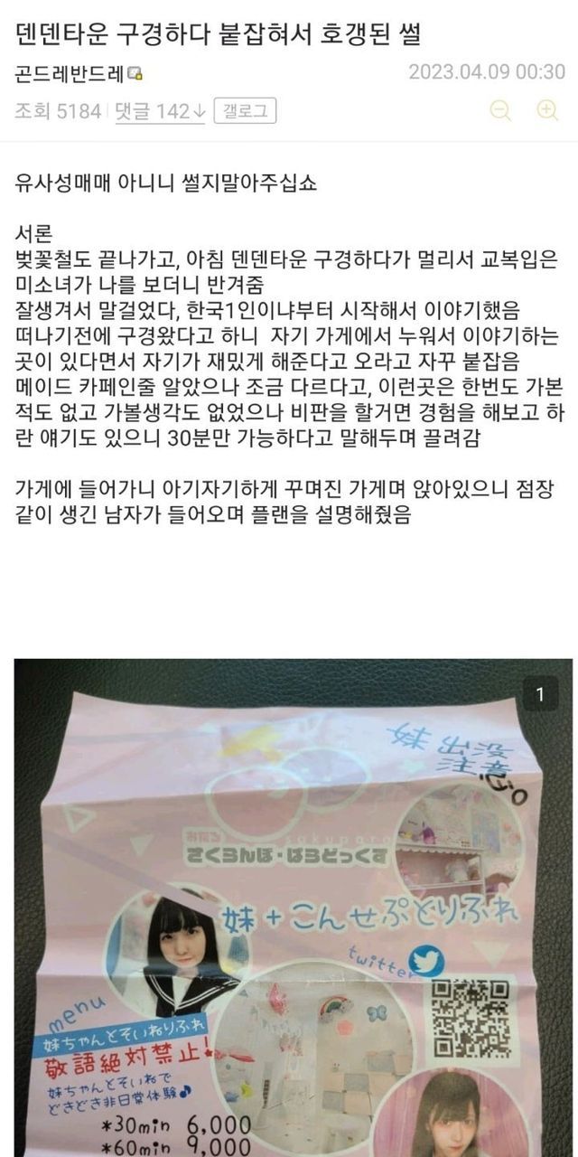 일본 길거리에서 교복입은 여고생한테 호객행위 당한 썰.