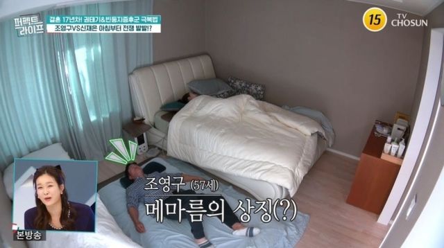 이후 신재은은 MC들과 함께 자신의 일상을 관찰했다. 가장 눈길을 끈 건 한 방에 있지만, 침대와 바닥에서 각각 따로 자고 있는 부부의 모습이었다.