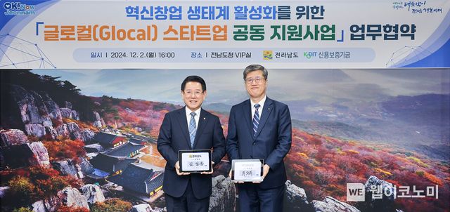 신용보증기금(이사장 최원목)이 지난 2일 전라남도(도지사 김영록)와 지역특화 스타트업 발굴과 성장지원을 위한 ‘글로컬(Glocal) 스타트업 공동 지원사업 업무협약’을 체결했다고 4일 밝혔다.