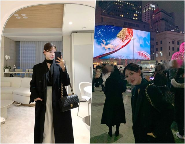 지난 4일 이나연은 자신의 인스타그램에 "오랜만에 꾸꾸 하고 데이트"라며 이날 데이트 착장 사진을 업데이트했다. 사진 속 이나연은 블랙 앤 화이트 패션으로 멋을 낸 모습이다. 특히 블라우스와 하이웨이스트 팬츠 위에 롱코트를 걸친 뒤, 명품 가방을 매치했다.