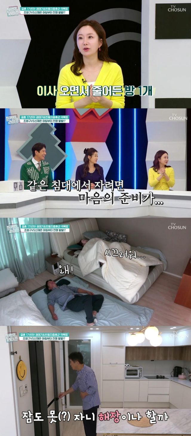 이어 신재은은 "같이 자는 건 좀 심적으로 부담이 되더라. 갑작스럽게 다가가는 건 좀 아닌 것 같고, 시간이 필요했다. 그래서 조영구 씨가 바닥에서 자기 시작했다"고 전말을 설명했다.