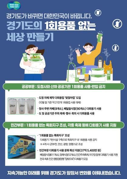 민선 8기 경기도는 기후위기 대응에 있어 정부와 다른 지자체를 선도하며 적극적인 정책을 펼쳤다. 그중에서도 1회용품 줄이기는 공공과 민간 부문을 아우르며 도민 생활 속 변화를 이끌어냈다.