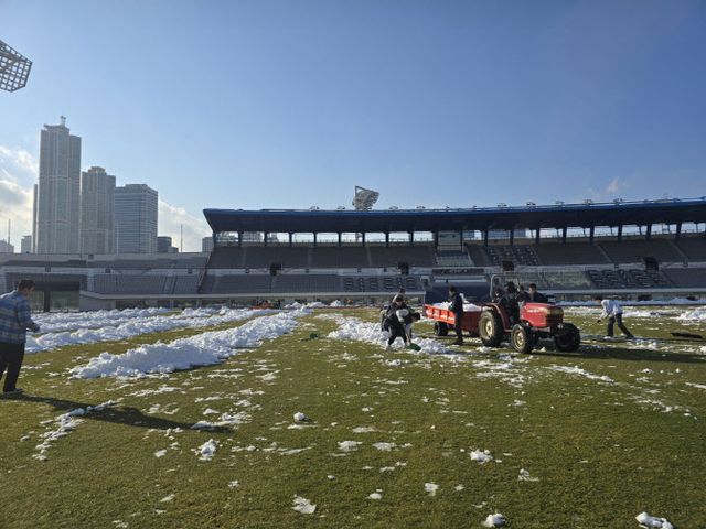 눈이 자연적으로 녹을 기미가 보이지 않자 구단 대표이사를 포함한 프런트 전원과 목동사업과 직원 약 30명이 직접 삽을 들고 제설에 나섰다. 구단 관계자에 따르면 제설 작업은 오전 9시부터 시작해 오후 6시가 돼서야 마무리됐다.
