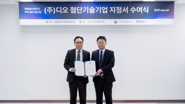 김종원 디오 대표이사는 "우리 회사의 디지털 임플란트 기술이 첨단생명공학으로 인정받아 매우 기쁘다. 향후 5년 동안 수백억 원의 세금 감면 효과가 있어, 해외 시장 공략을 위한 재원확보와 우수한 인재를 추가로 채용하는데에 큰 도움이 될 것"이라고 말했다.