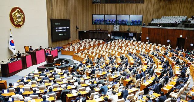 국회 본회의장 자료 사진. 윤석열 대통령 탄핵소추안 국회 본회의 표결이 토요일인 12월 7일이 이뤄질 가능성이 높다는 전망이 더불어민주당 측에서 나왔다. / 뉴스1