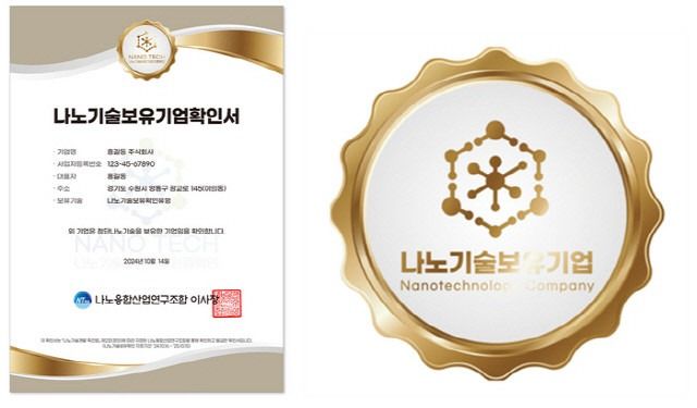 나노기술보유기업 확인서/마크: 기술신뢰성 확보 및 시장 경쟁력 강화