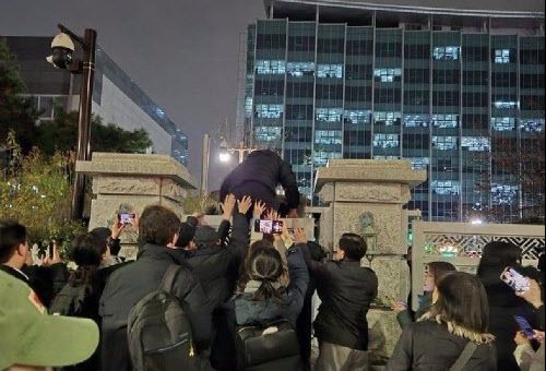 이를 막고자 국회 본회의를 열려는 국회의원들이 달려가서 벽을 오르고 안으로 진입한 것과, 비상계엄령에 분노한 시민들이 군대에 맞서 이들의 진입을 돕고 몸으로 군경을 막아낸 것 등과 관련해 사회관계망서비스(SNS)에는 “이게 민주주의를 지키는 방법” “한국 국민 수준에 매우 놀랐다” “전 세계적 모범 사례” 라는 등 환호가 터져 나왔다.