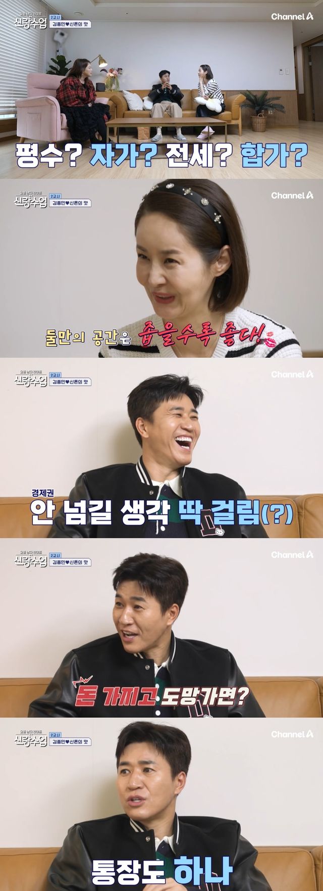 이에 김가연은 “굳이 처음부터 ‘자가’일 필요는 없다. 신혼이니까 둘만의 공간은 좁을수록 좋다”고 경험에서 우러난 조언을 건넸다. 심진화 역시 “제일 중요한 건 경제권”이라며 서로의 다름을 잘 절충해야 한다고 강조했다.