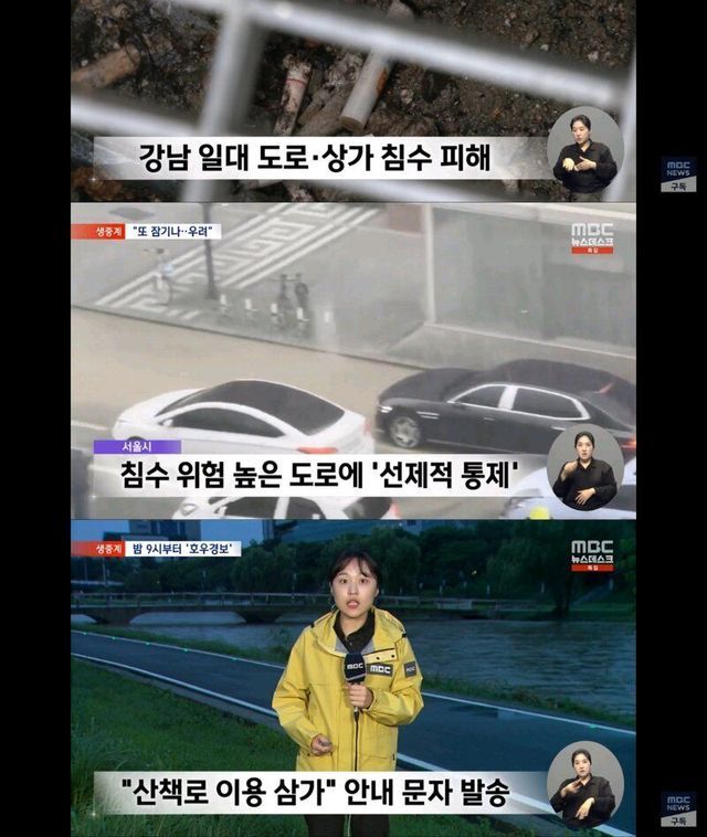 최근 전국 호우 현황과 관악구 반지하와 재래시장 모습.