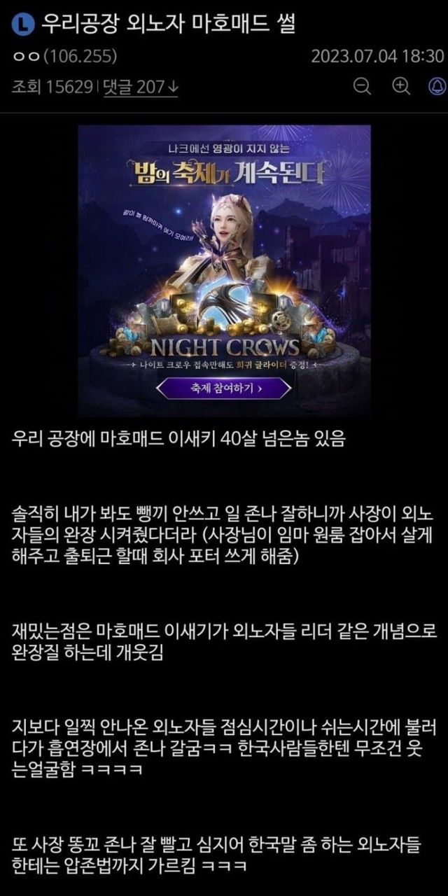 공장 외노자 마호매드 썰.