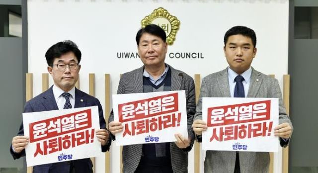 [와이뉴스] 의왕시의회 서창수, 김태흥, 한채훈 의원은 5일 오전 ‘민주주의와 헌정질서를 파괴하려 한 윤석열 대통령은 사퇴하라’는 결의문을 채택했다고 밝혔다.