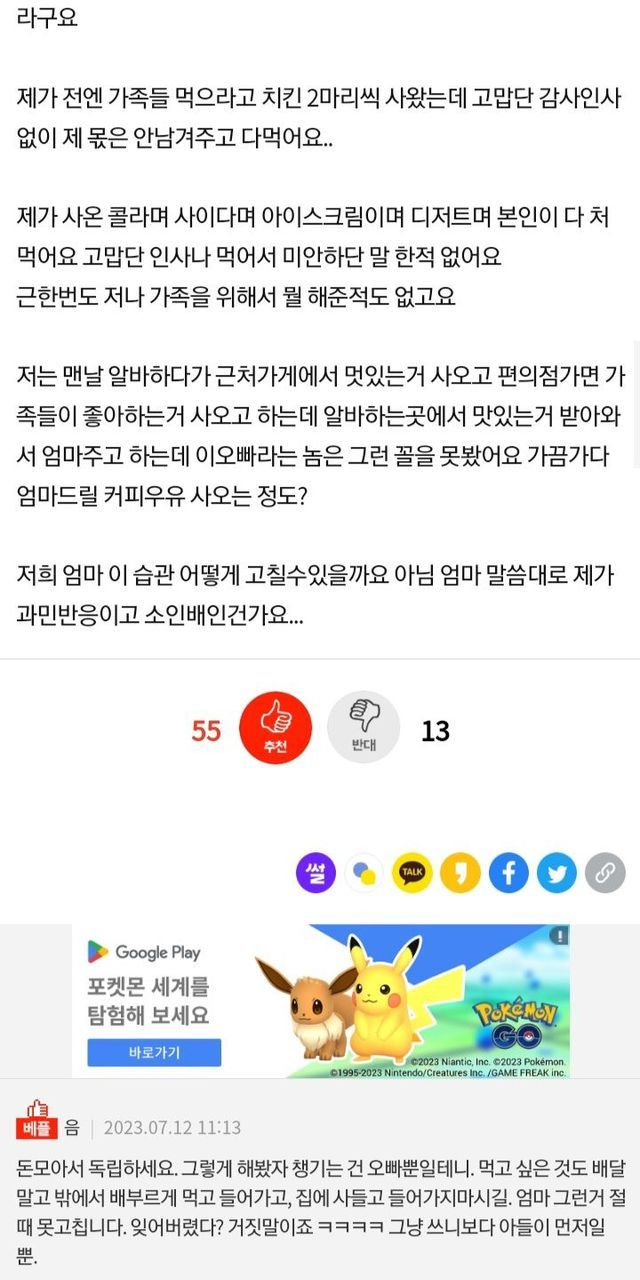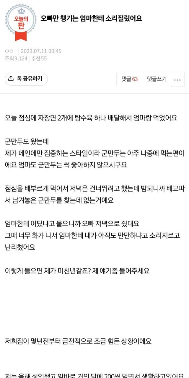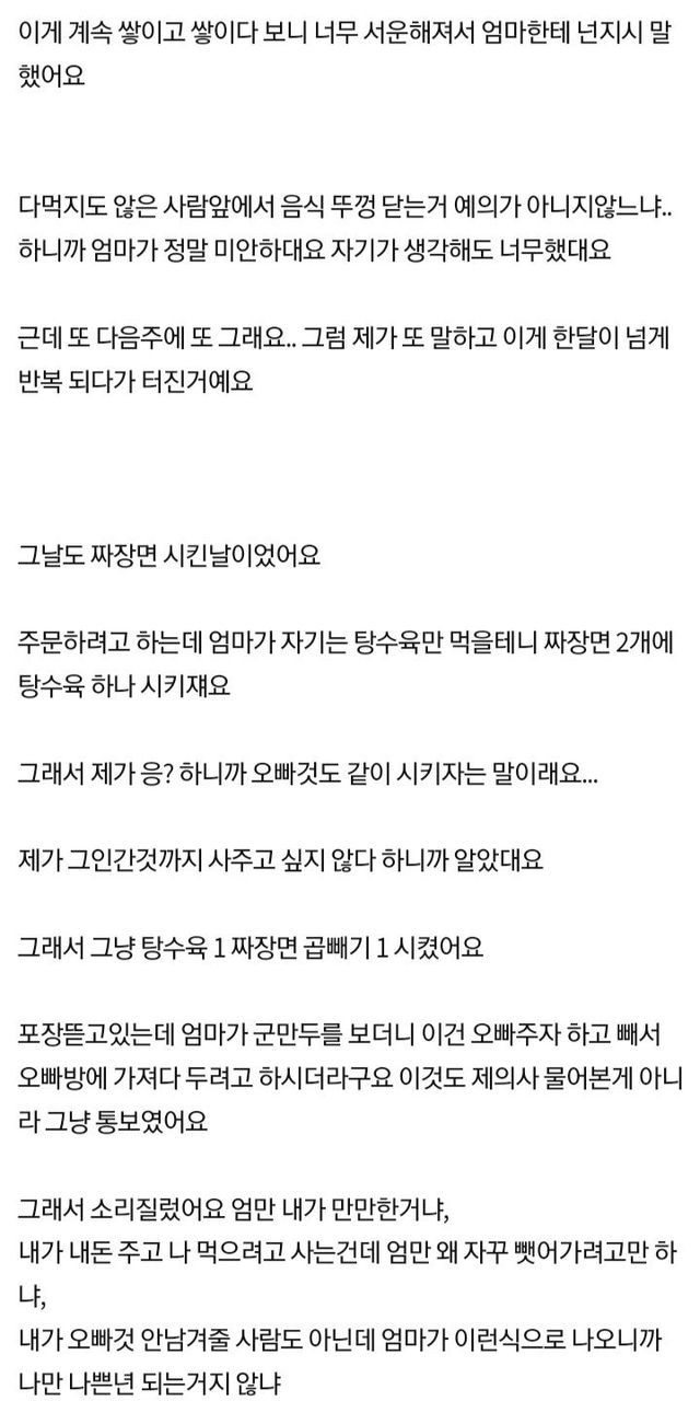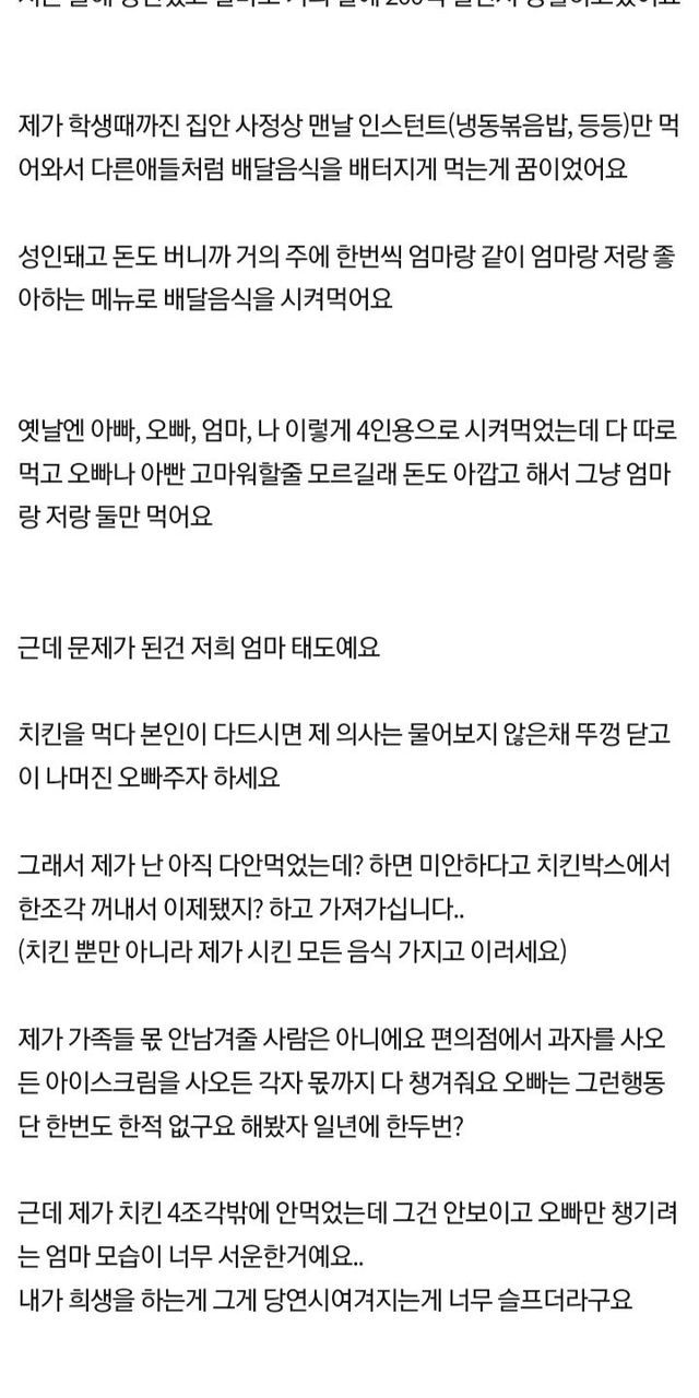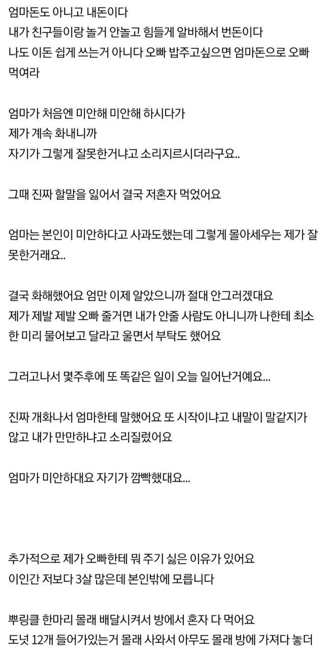 오빠만 챙기는 엄마한테 소리질렀어요.