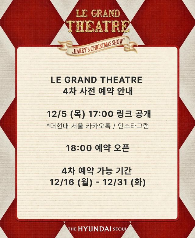 - 링크 공개 : 12월 5일 오후 5시 / 더현대 서울 카카오톡 & 인스타그램