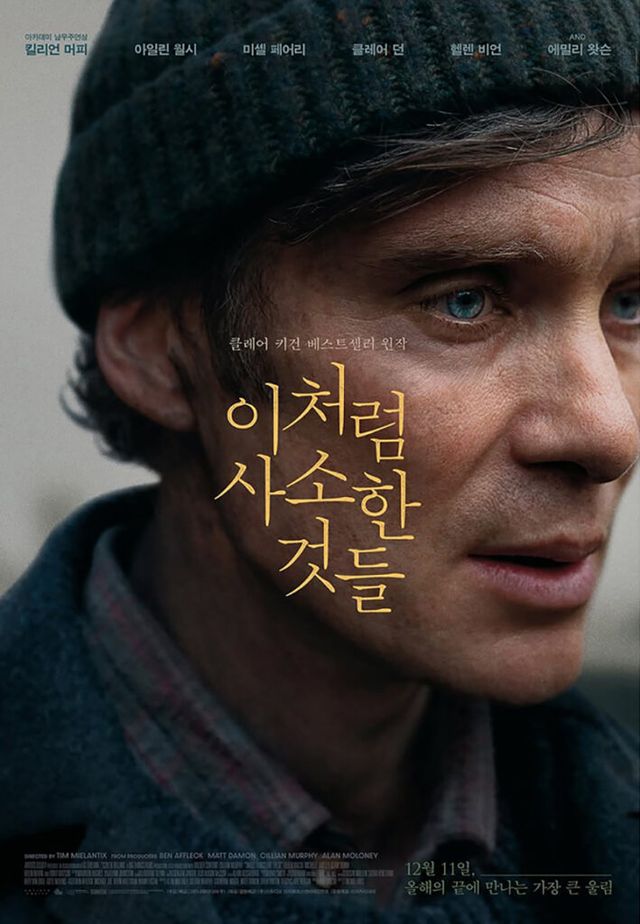 올해 제74회 베를린국제영화제 개막작이자, 2022년 부커상 최종 후보에 올랐던 클레어 키건의 동명 소설을 원작으로 한 <이처럼 사소한 것들>. 크리스마스를 며칠 앞둔 1985년 겨울, 가족과 함께 소박한 삶을 이어가던 아일랜드의 석탄 목재상 ‘빌 펄롱’(킬리언 머피)이 지나온 삶을 되돌아보며 내리는 어떤 선택에 관한 이야기다. 석탄을 배달하러 간 수녀원에서 펄롱은 불의의 현장을 목격하지만, 가족의 안위를 지켜야 한다는 부담감에 짓눌린 채 갈등한다. 선택의 기로에서 그가 떠올리는 것은 지금의 자신을 이루고 있는 ‘사소한 것들’. 누군가 건네준 사소한 친절, 개인의 작은 용기가 어떻게 커다란 파동을 만들어낼 수 있는지를 떠올리며 펄롱이 내린 선택을 끝으로 영화는 막을 내린다. 영화는 여성들을 대상으로 감금과 강제 노동을 일삼은 아일랜드의 ‘막달레나 세탁소’ 사건을 소재 삼아, 거대한 불의를 때로는 침묵으로, 때로는 ‘상관 없다’는 말로 간편히 묵인해온 공동체의 위선에 초점을 맞춘다. 드라마 <피키 블라인더스> 시즌 3를 연출하며 킬리언 머피와 깊은 인연을 맺은 팀 밀란츠 감독이 연출했으며, 킬리언 머피와 그의 아내가 클레어 키건의 책을 들고 감독을 직접 찾아오면서 시작된 프로젝트라는 후문. 극 중 수녀원의 어두운 비밀을 지키는 수녀 ‘메리’를 연기한 배우 에밀리 왓슨이 도덕적으로 양가적인 입장에 놓인 인물을 심리를 섬세하고 깊이 있게 표현했다는 평과 함께 베를린국제영화제 은곰상을 수상했다. 12월 11일 개봉.