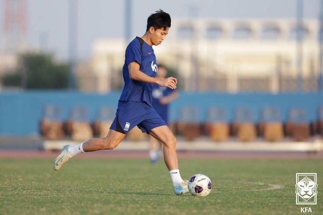 한국 축구대표팀 정우영이 지난달(현지시간) 쿠웨이트 자베르 알 아흐메드 국제 경기장 보조구장에서 팀훈련을 하고 있다. / 뉴스1