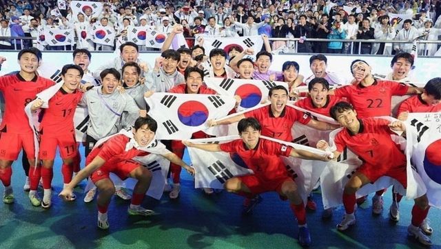 2023년 항저우 아시안게임에서 환호하는 한국 축구 대표팀 / 정우영 인스타그램