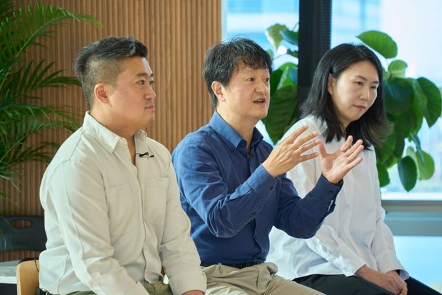 기자들의 질문에 밀리의서재 박현진 대표, 이성호 독서당 본부장, 방은혜 AI 서비스 본부장이 답변하고 있다. 사진=밀리의서재 제공