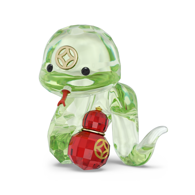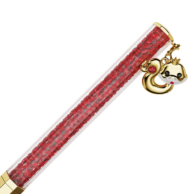 신비로운 뱀 모티프의 홈 피겨린은 약 398개의 파셋으로 생동감 넘치게 구성했습니다. 골드 톤의 메탈 액센트가 더해진, 소중한 것을 모두 담는 붉은 주머니도 함께 만나볼 수 있죠. 스와로브스키의 시그니처 옥타곤 형태로 제작된 크리스털 볼펜에도 우아하고 앙증맞은 스네이크 참이 반짝임을 더합니다.
