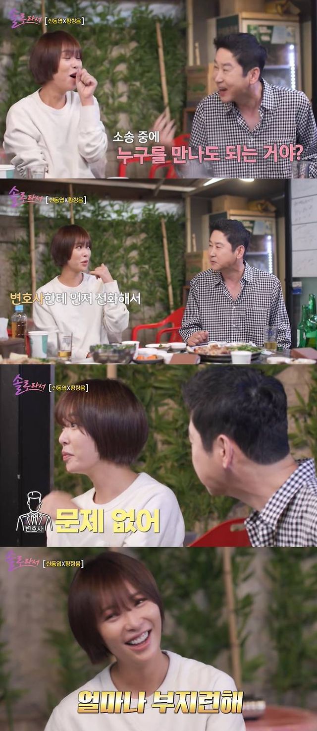 황정음은 "변호사에게 먼저 전화해서 '문제 될까요?'라고 물어봤다. 문제없다고 했다"라며 '이혼 소송 중 연애'와 관련해 변호사에게 자문을 받았던 점을 밝혔다.