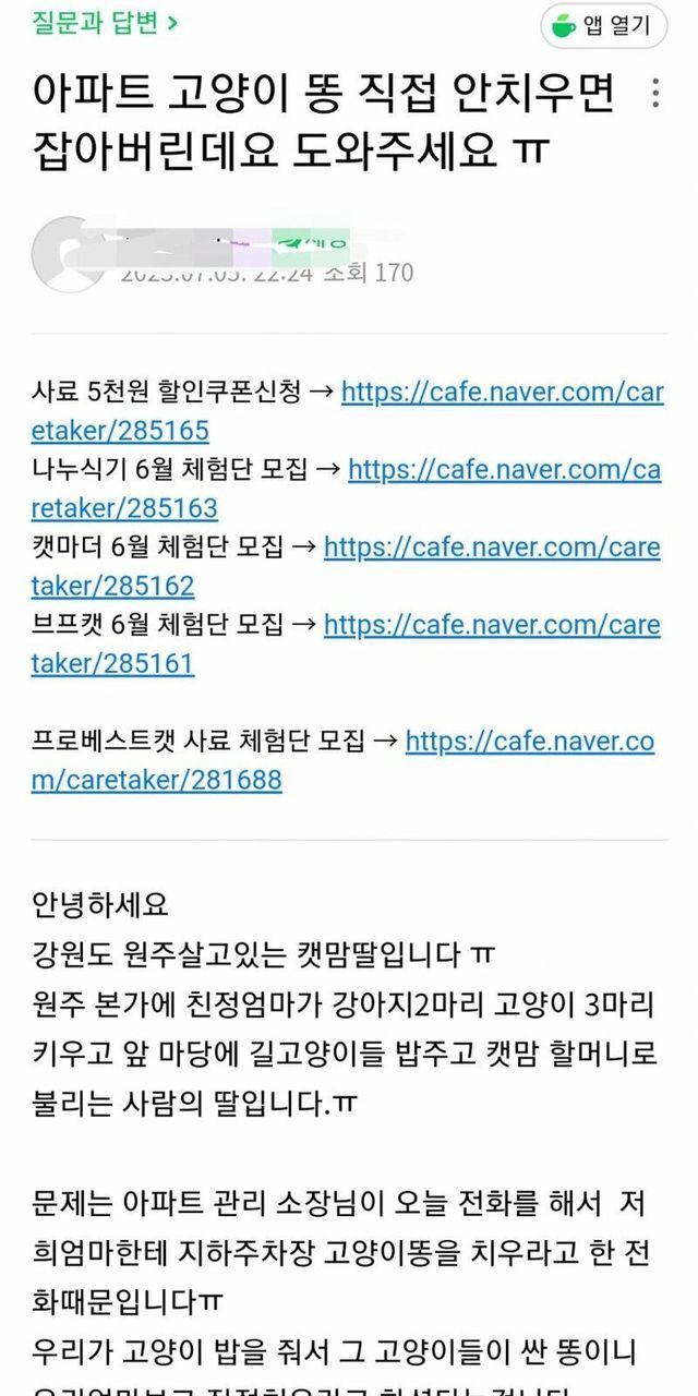 자기들이 밥 준 고양이 똥 직접 치우라니까 불만