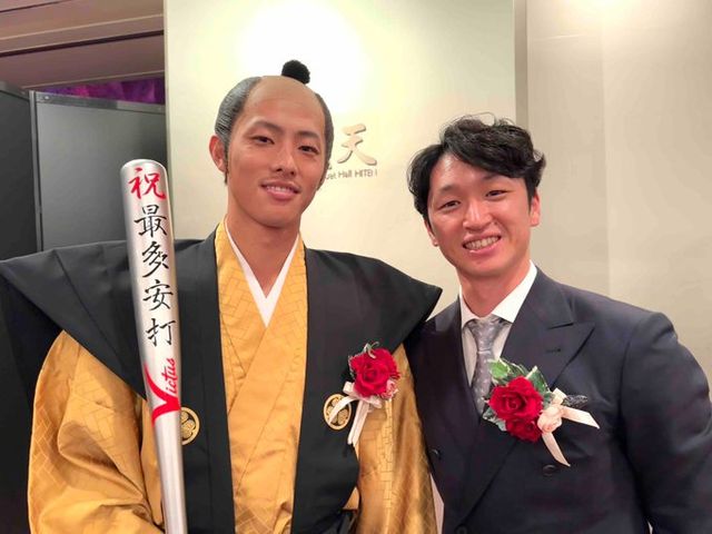 다쓰미는 '괴짜' 행보는 골든글러브 시상식뿐만이 아니었다. 지난 26일 열린 NPB 어워즈에서는 최다 안타와 베스트나인, 특별상을 거머쥐었다. 그때마다 사무라이, 쇼군, 영국의 악명 높은 연쇄 살인마 '잭 더 리퍼' 코스프레를 한 채 등장했다. 골든글러브 시상식의 금칠 분장은 그 정점이었다. 다쓰미는 "조금이라도 시상식 분위기를 끌어올리기 위해 이렇게 분장했다. 아내와도 충분히 상의했다"라고 말했다.