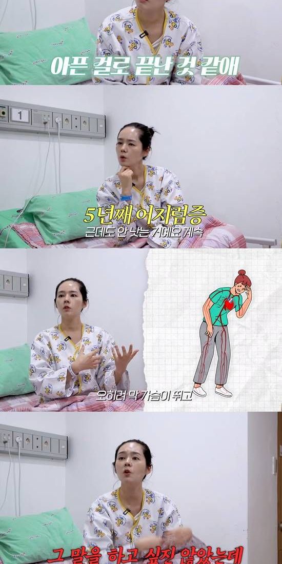 "그렇게 아파 보이진 않는데"라는 PD의 말에 한가인은 "들어올 때는 기어서 왔다. 링거 방금 뺀 거다. 담당해 주시는 선생님이 원인을 찾아주셔서 급격히 나았다. 완전 쓰러져서 남편 붙잡고 기어 와서 간호사님들이 휠체어 태워주시고"라고 이야기했다.