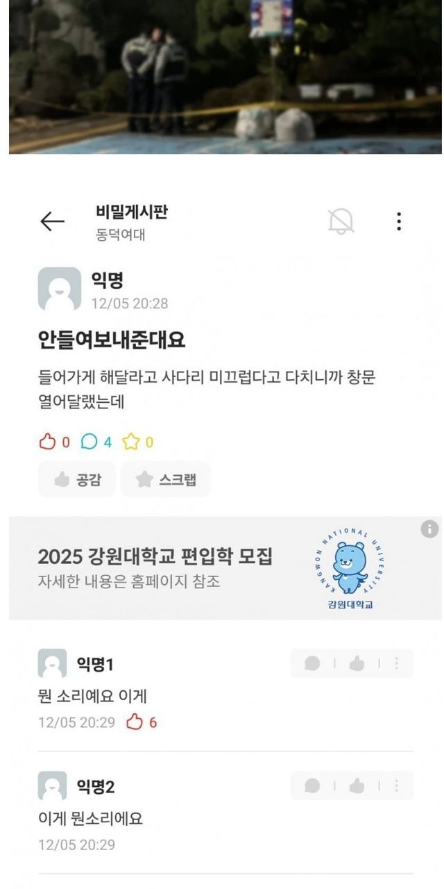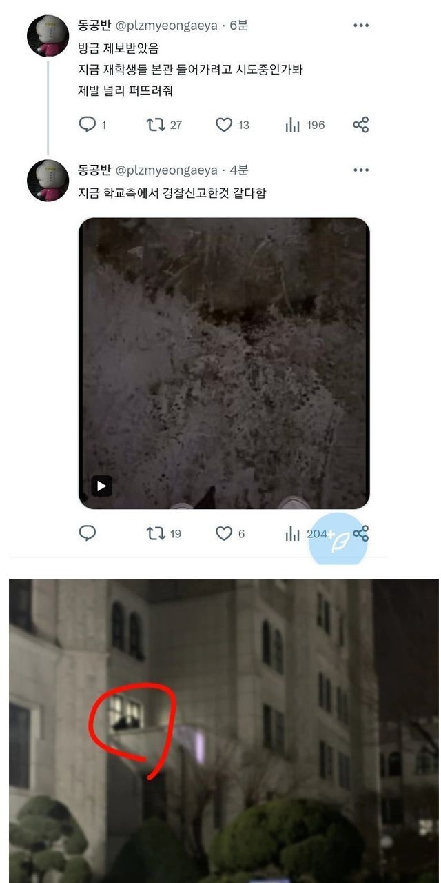 동덕여대 갤에 따르면 시위대들이 다시 본관 점거하려 했으나