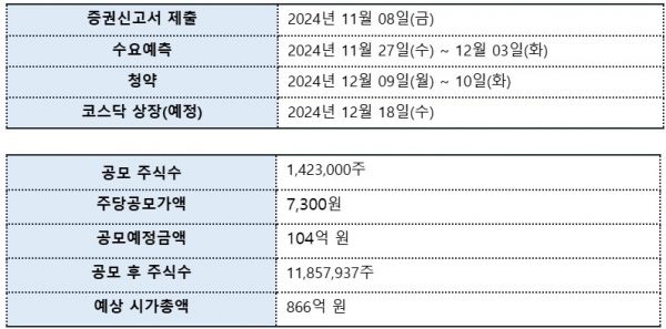 ◆시장친화적 공모가 책정 = IPO를 주관한 미래에셋증권 관계자는 “최근 상장 기업들이 상장 당일 주가 하락을 겪는 등 어려운 시장 환경을 고려해 비교 기업 대비 우수한 사업 모델에도 불구하고 투자자 친화적인 공모가를 책정했다”고 밝혔다.