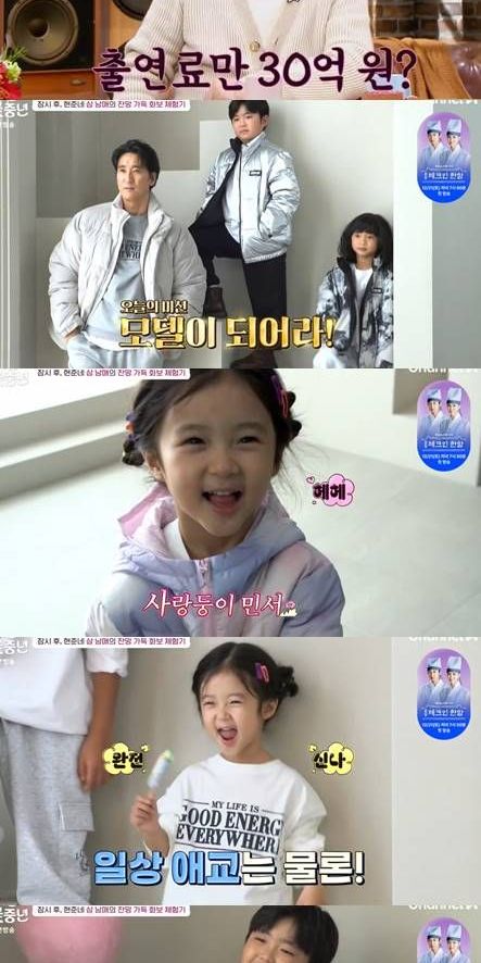 5일 방송된 채널A ‘아빠는 꽃중년’ 31회에서는 ‘57세 꽃중년’ 신현준과 12세 연하의 아내 김경미가 “변우석, 한소희와 같은 브랜드의 같은 시즌 모델이 됐다”는 소식을 전하며, 삼남매 민준-예준-민서와 함께 ‘광고 촬영’을 진행하는 현장이 펼쳐졌다.