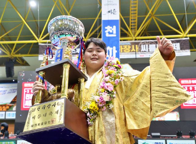 김민재는 이번 천하장사 대회 포함, 5연속 우승(출전 대회 기준) 및 7관왕이라는 대기록을 세웠다. 4대 메이저대회로 불리는 설날, 단오, 추석, 천하장사대회 타이틀을 싹쓸이했다. ‘그랜드슬램’이다. 올해 승률이 무려 88.9%다. 지난해 6관왕과 대학 시절 천하장사 우승을 포함, 개인 통산 14차례나 우승(백두장사 12회·천하장사 2회)을 맛봤다.