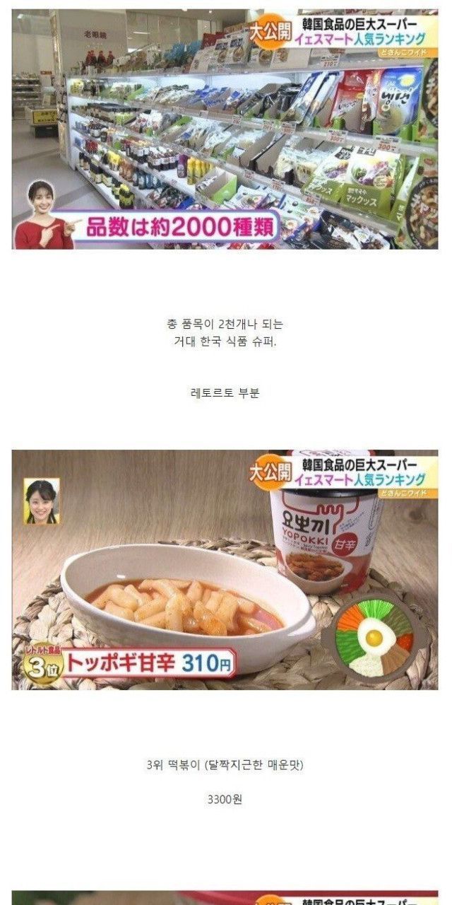 일본에 있는 한국식품 마트 판매 랭킹..