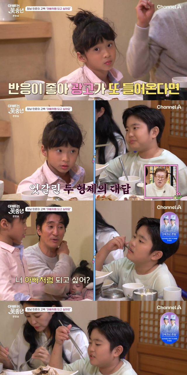 5일 방송된 채널A ‘아빠는 꽃중년’ 31회에서는 ‘57세 꽃중년’ 신현준과 12세 연하의 아내 김경미가 “변우석, 한소희와 같은 브랜드의 같은 시즌 모델이 됐다”는 소식을 전하며, 삼남매 민준-예준-민서와 함께 ‘광고 촬영’을 진행하는 현장이 펼쳐졌다.