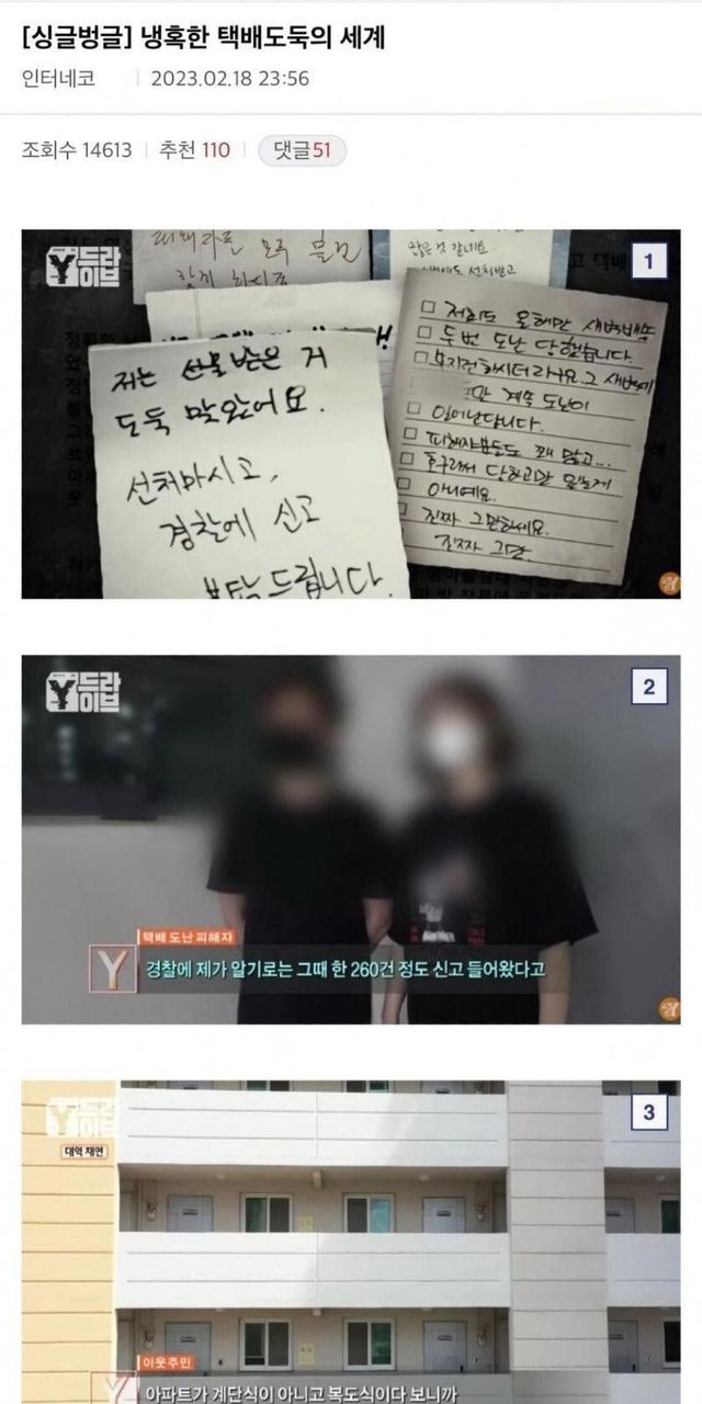 방송국에서 잡아준 택배도둑.