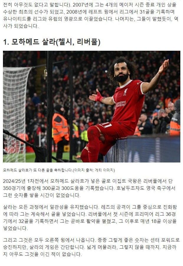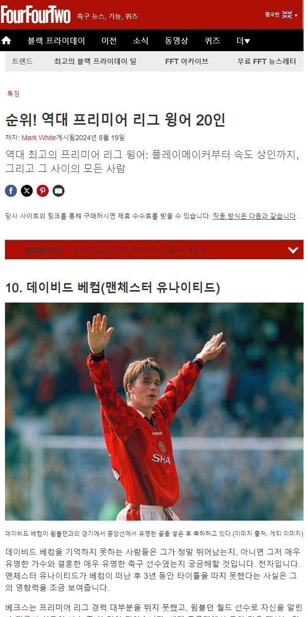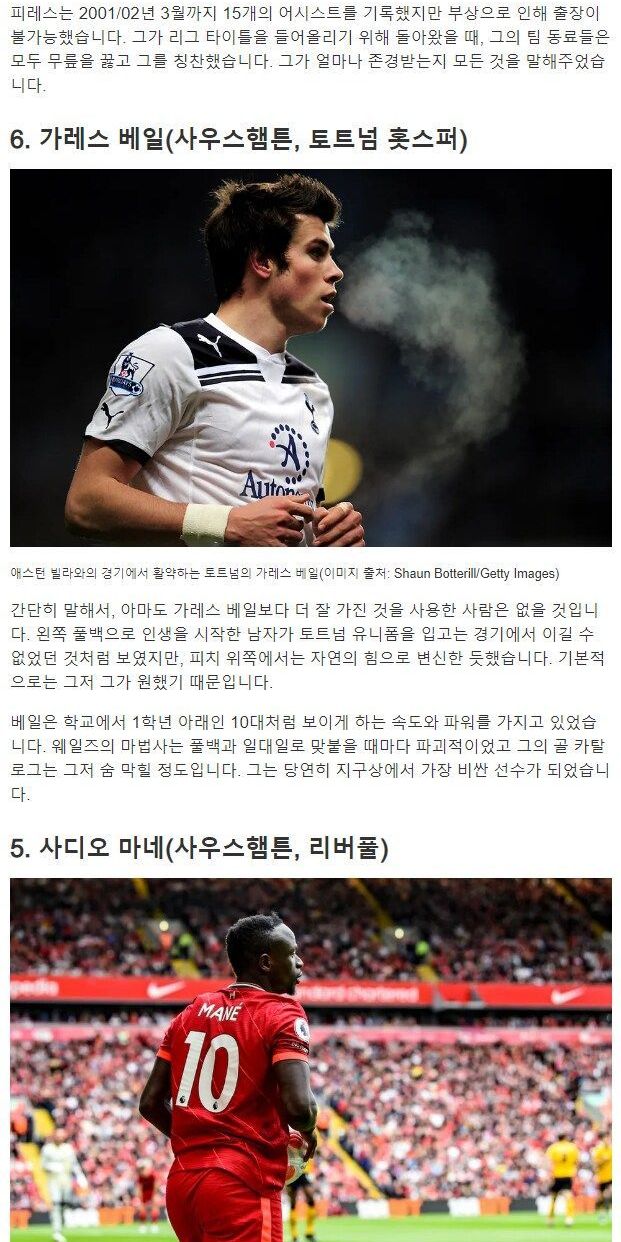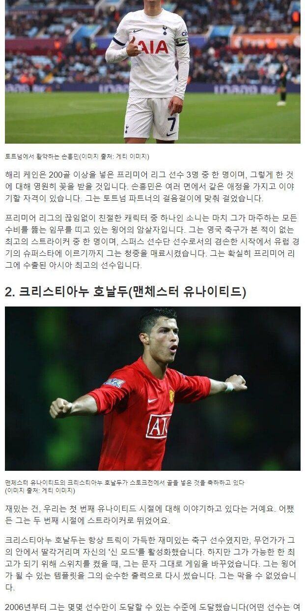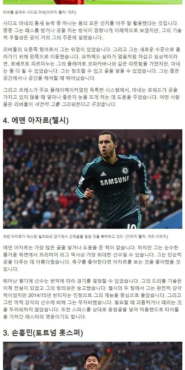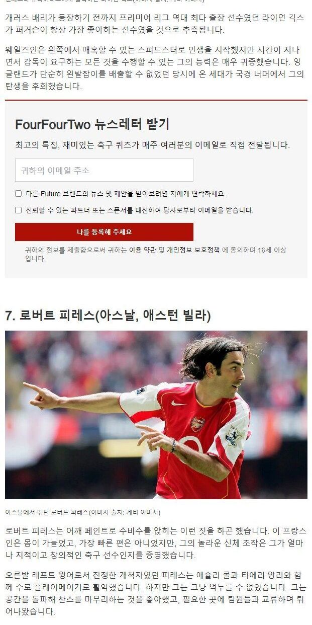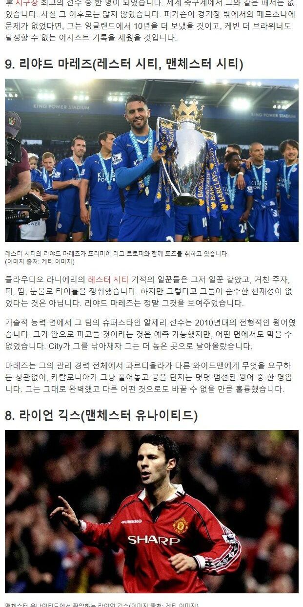 유명 외신 선정, 프리미어리그 역사상 최고의 웡어 순위