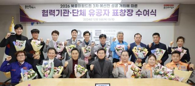 [파이낸셜경제=김영란 기자] 용인특례시는 대한민국 남자축구 국가대표팀의 ‘2026북중미월드컵 3차예선’ 경기를 성공적으로 개최할 수 있도록 도움을 준 기관과 단체 유공자에게 표창장을 수여했다고 6일 밝혔다.