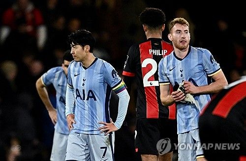 호주 출신 안지 포스테코글루 감독이 이끄는 토트넘은 6일(한국시간) 영국 본머스의 바이털리티 스타디움에서 본머스와 2024-2025 프리미어리그 14라운드 원정 경기에서 전반 17분 내준 선제골을 만회하지 못하고 0-1로 패했다.