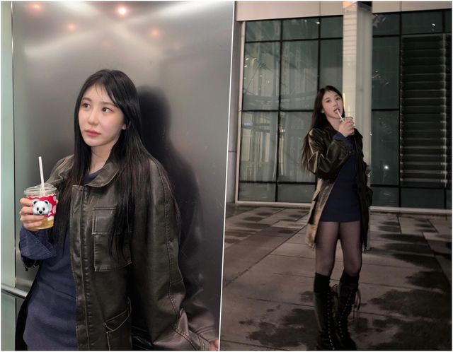 사진 속 이채연은 각선미를 드러내는 미니 원피스 위에 가죽 재킷을 걸쳐 힙한 분위기를 연출했다. 특히 이채연은 추운 날씨에도 아이스 음료를 선택한 모습으로 눈길을 끌었다.